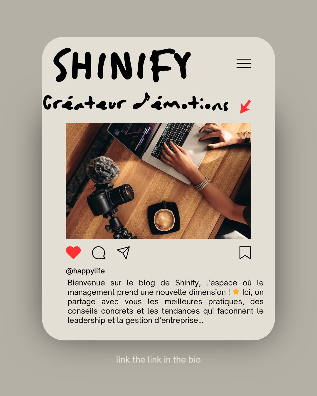 Arrêtez de courir après la performance comme si c’était une formule magique à décrocher. Et si, au lieu de vous épuiser à suivre des méthodes toutes faites, vous choisissiez d’incarner la réussite à votre manière ? Chez Shinify, on est convaincus que le succès commence par l’authenticité et l’épanouissement personnel.