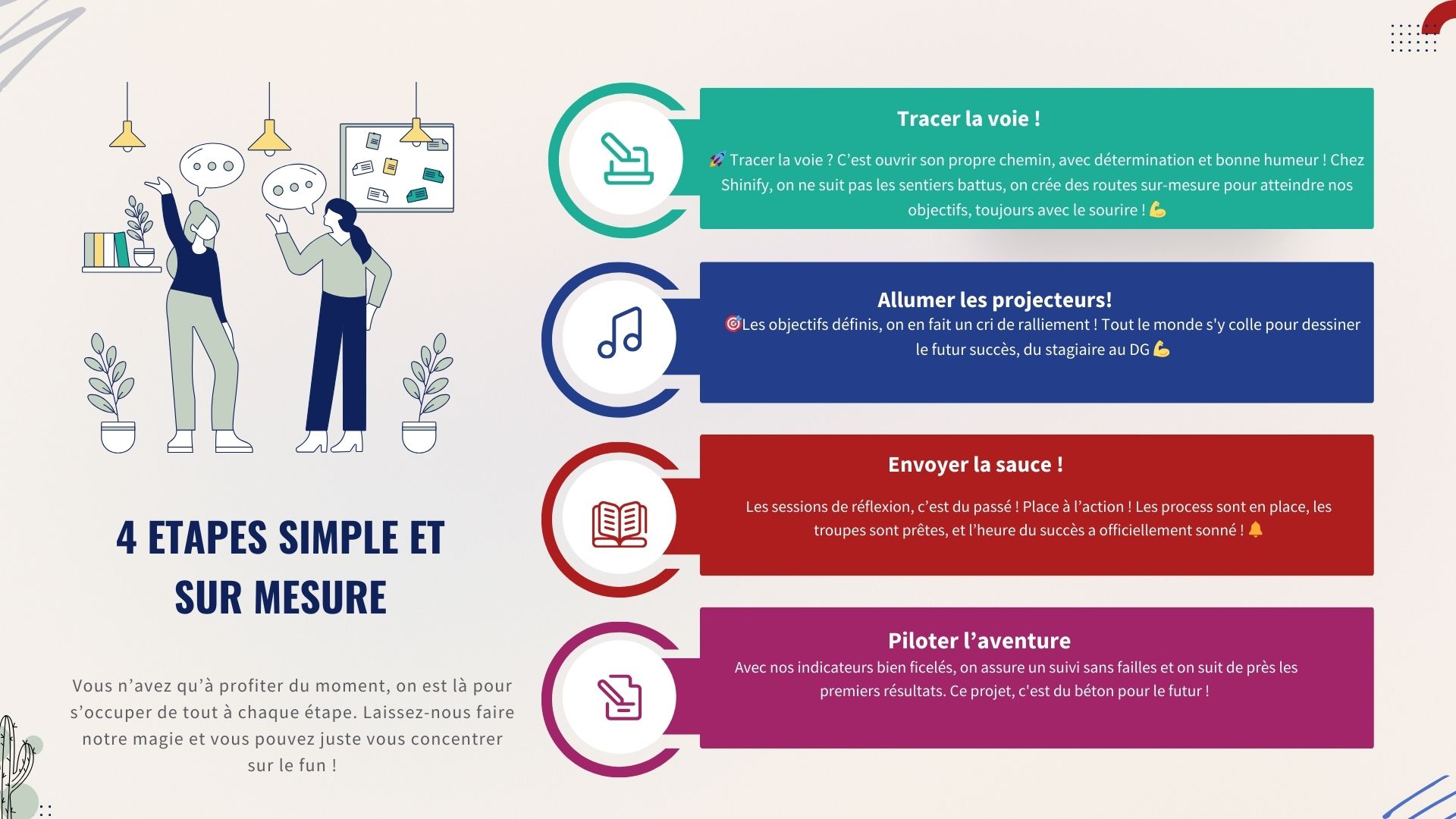 N’ayons pas peur des mots : chez SHINIFY, nos valeurs sont bien plus qu’un slogan, elles sont l’âme même de notre mission. Faire du bien aux hommes, c’est notre credo. Parce qu’on en est convaincus : on ne peut pas atteindre l’excellence sans un brin de joie et une pincée de bonheur. Ces émotions, trop souvent exclues du monde professionnel, jugées trop volatiles, trop imprévisibles, incapables de rentrer dans des cases ou de s’afficher sur un graphique croisé dynamique.